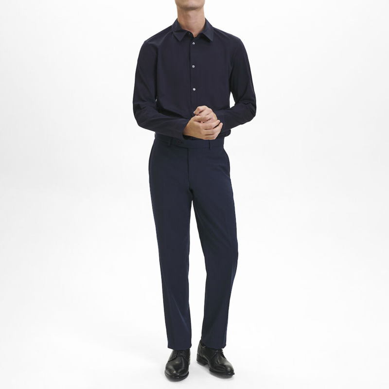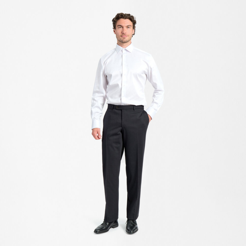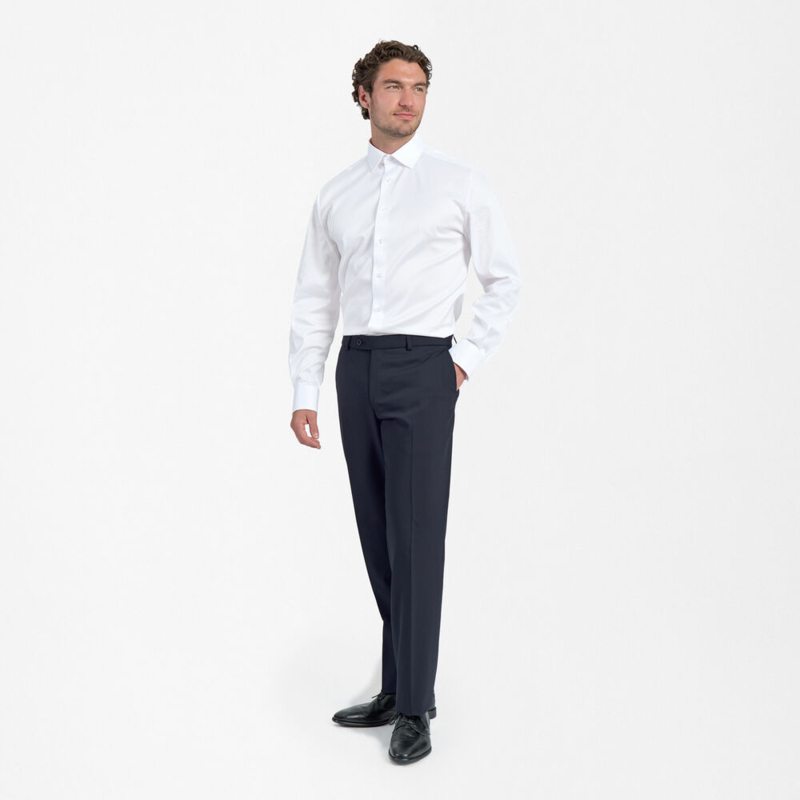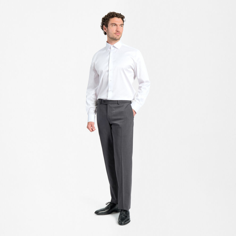 Artikelnummer: 1804-2722 (100/115/125/400/410)Maak kennis met onze klassieke regular fit broek. Deze broek is perfect voor op reis, naar het werk of voor een avondje uit, want hij is praktisch, comfortabel en tijdloos. Een speciale mix van wol, polyester en Lycra® zorgt ervoor dat de broek zijn vorm behoudt en er de hele dag fris en gestreken uitziet, zelfs in de auto of het vliegtuig. De siliconen in de tailleband zorgen ervoor dat je overhemd goed blijft zitten. De broek heeft schuine zakken aan de voorkant en paspelzakken met knoopsluiting aan de achterkant, en een halve voering voor extra comfort.